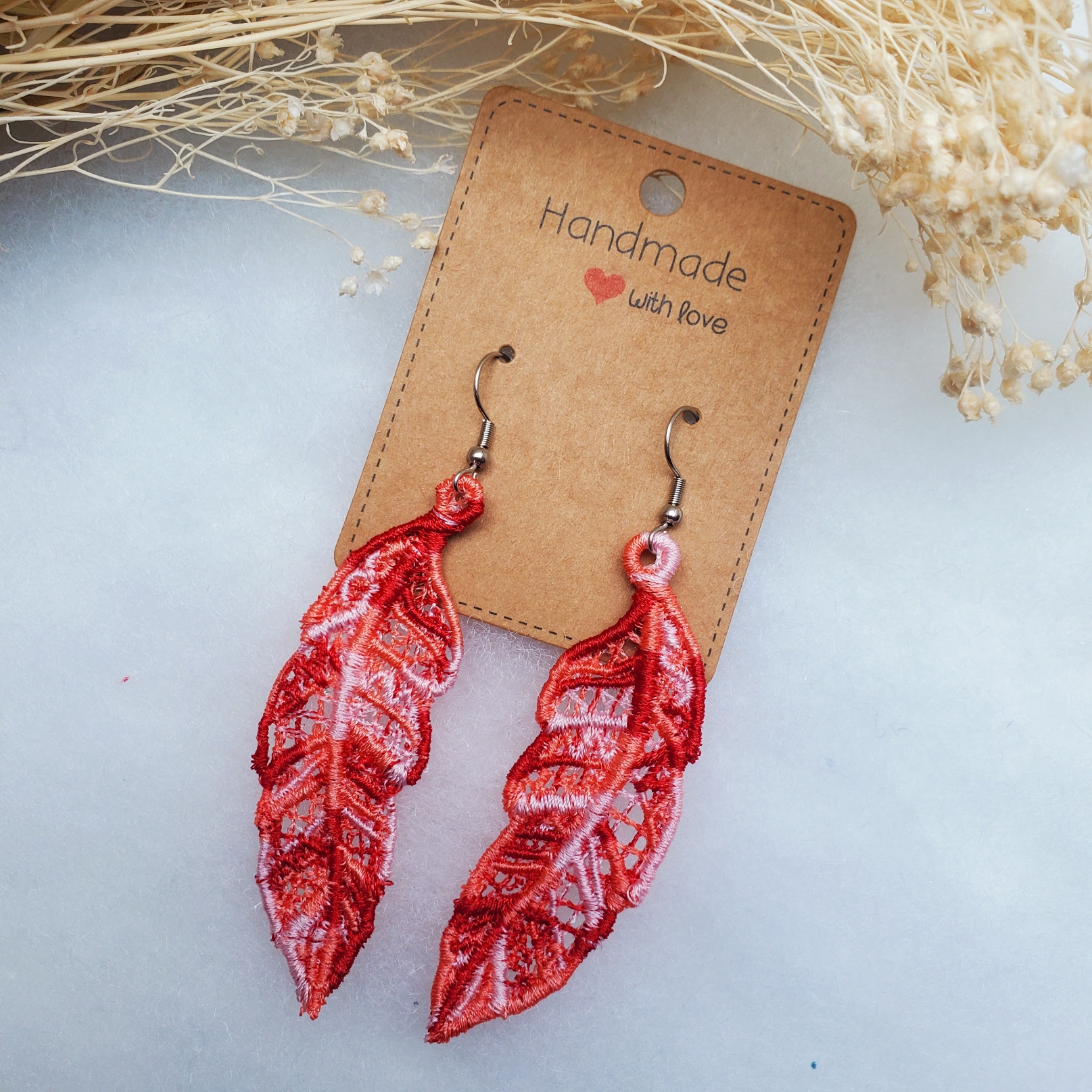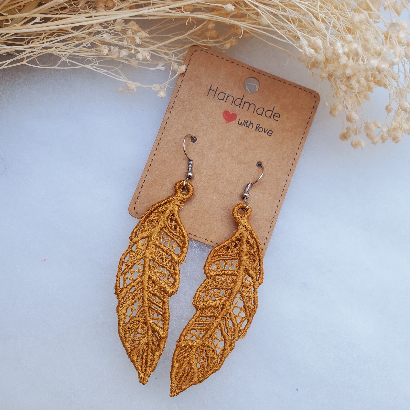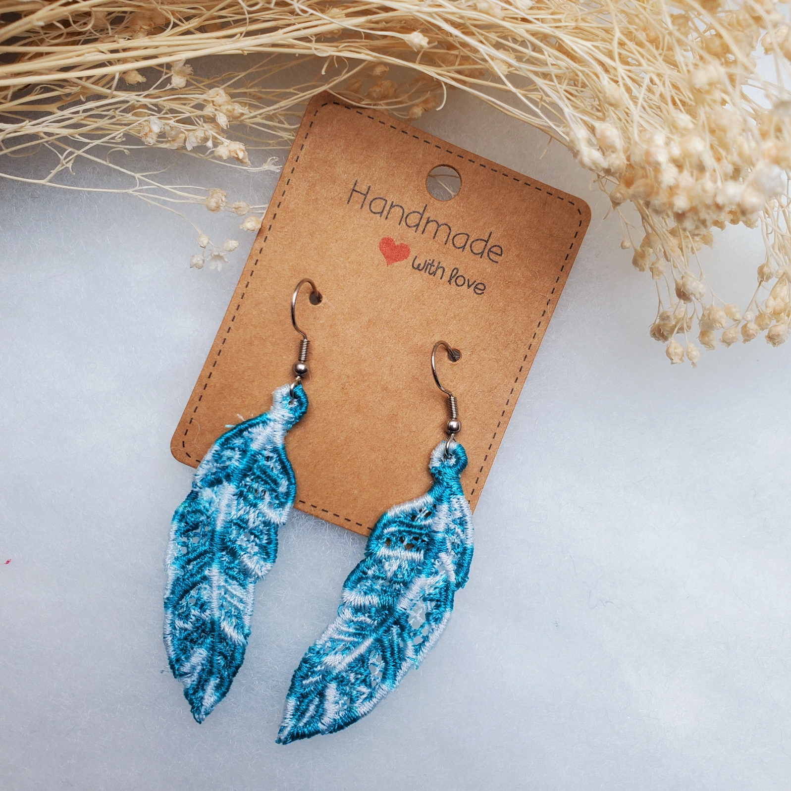 Ultra légères, originales et élégantes, ces boucles d’oreilles sont entièrement réalisées en broderie.