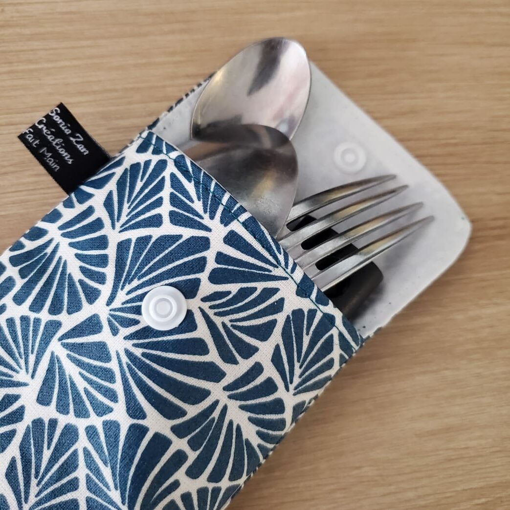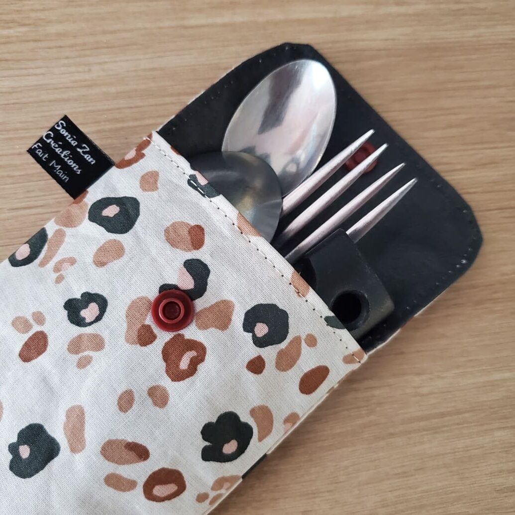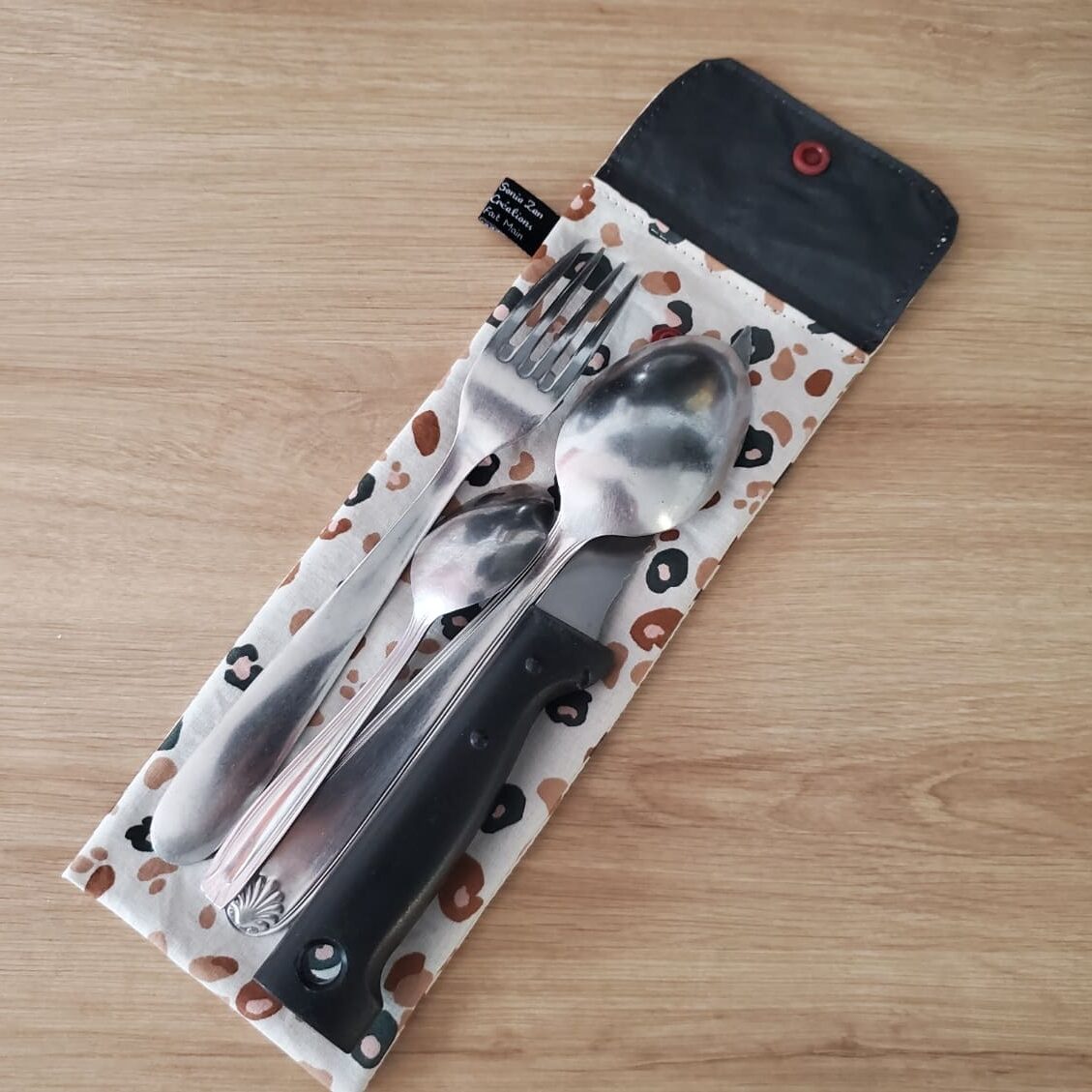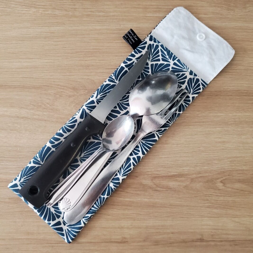 Ces étuis sont fabriqués en coton enduit imperméable et permettent d’éviter les couverts jetables.